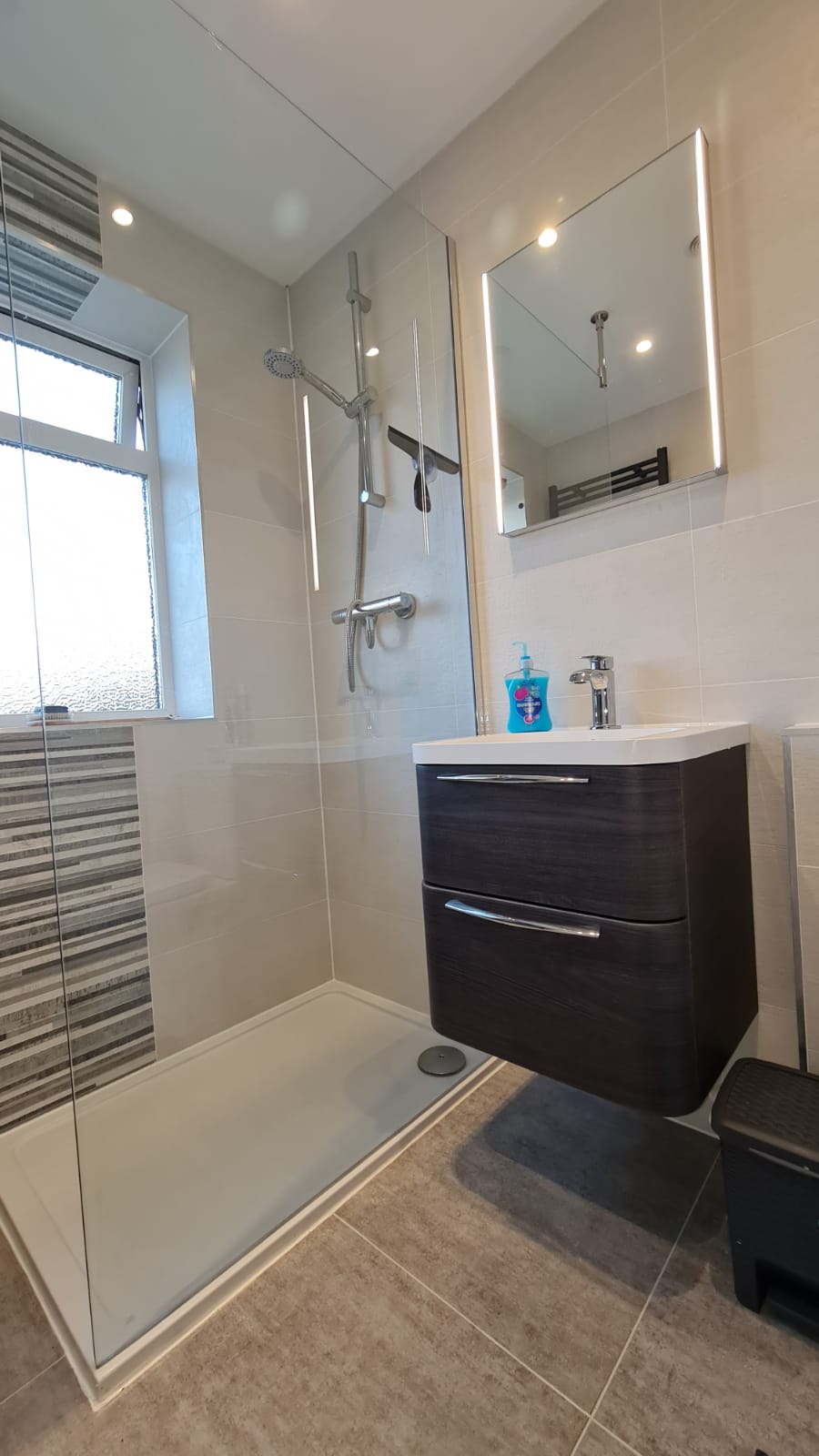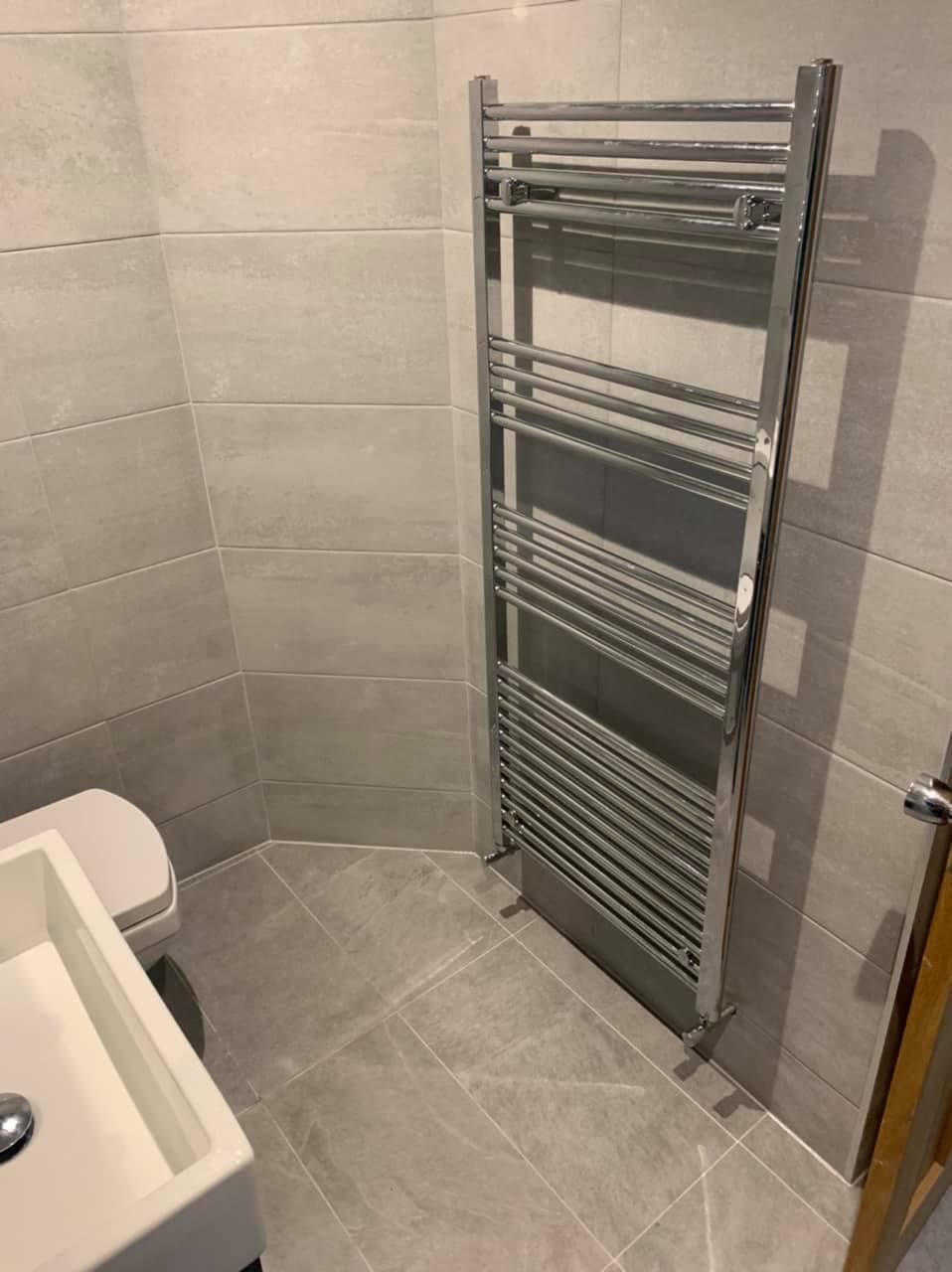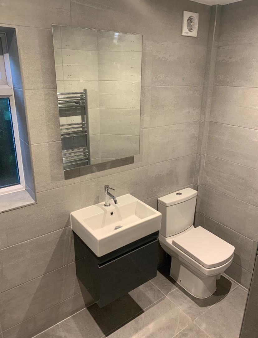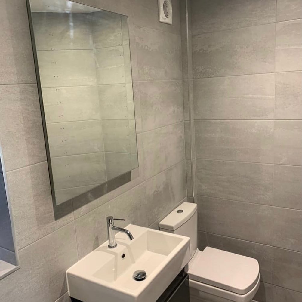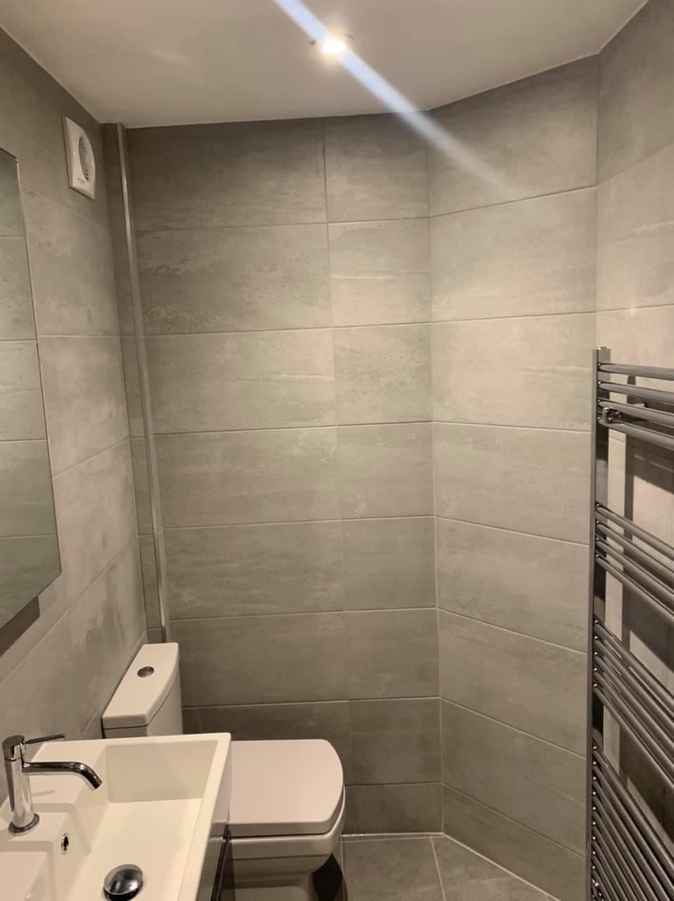 The works involved new pipework and bathroom suite with sanitaryware, underfloor tanking for the shower, plastering, tiling and lighting.