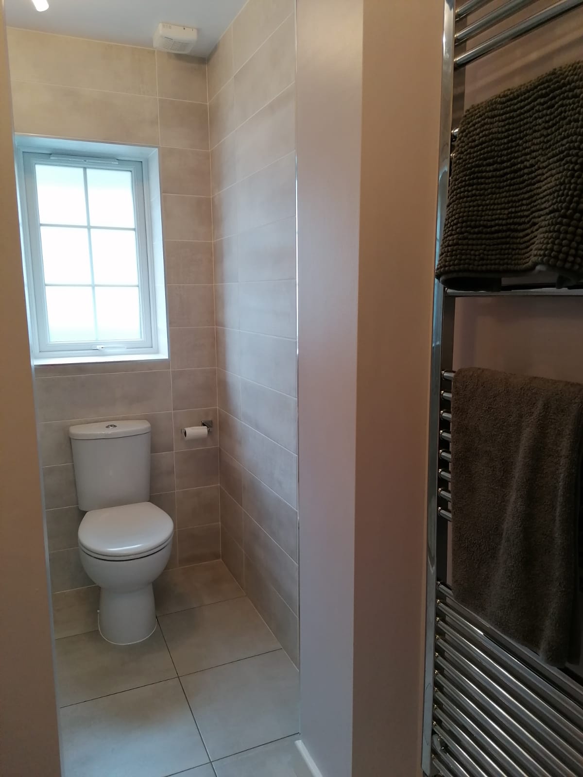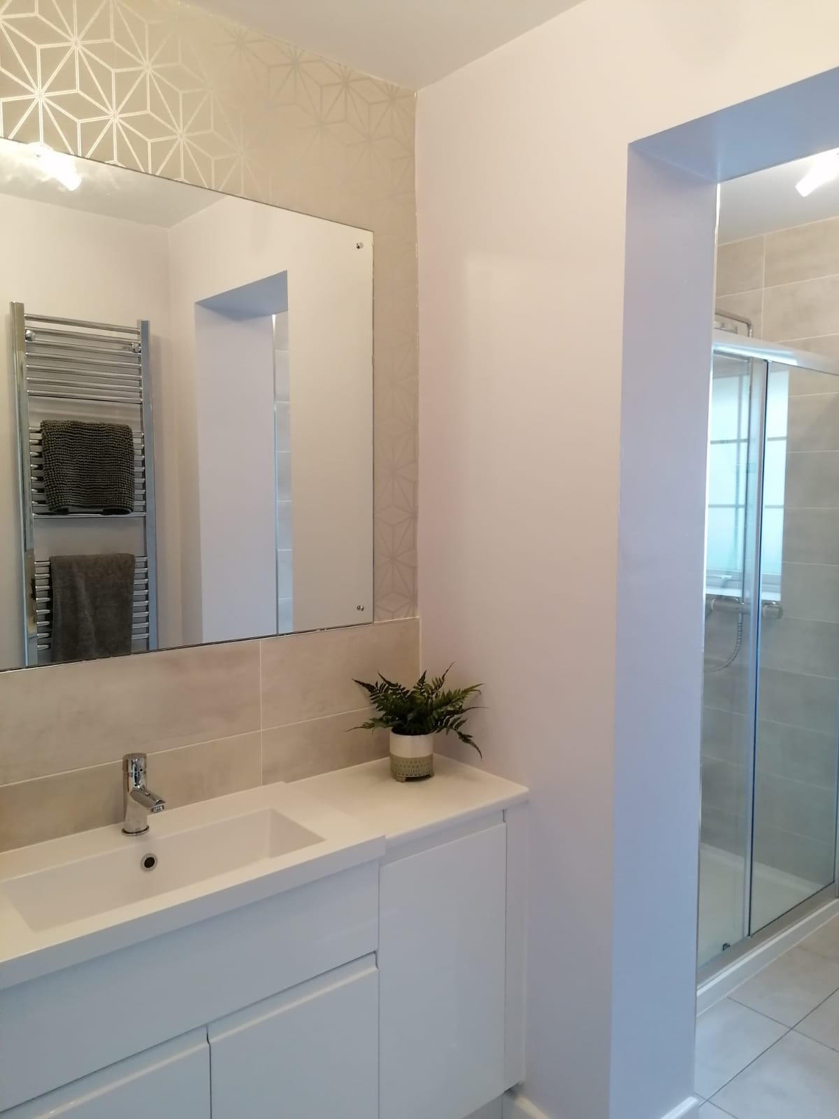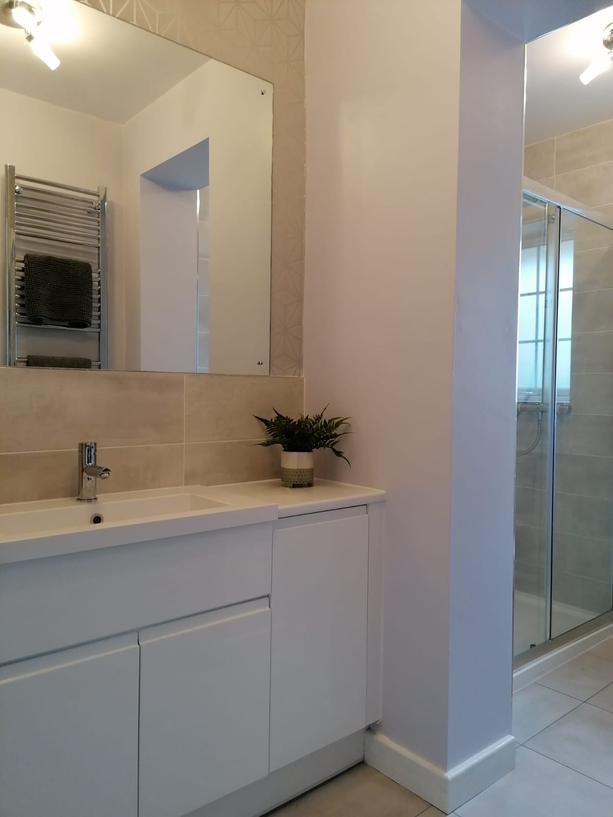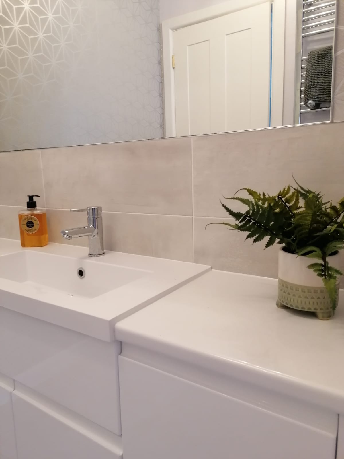 The works involved new pipework and bathroom suite with sanitaryware, underfloor tanking for the shower, plastering, tiling and lighting.